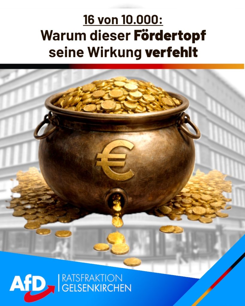 Im Ausschuss für Wirtschaft und Innovation der Stadt Gelsenkirchen wurde am 17.03.2026 ein Fördertopf der Wirtschaftsförderung für nachhaltige Projekte beschlossen. Finanziert wird dieses Instrument aus kommunalen Mitteln – also direkt aus dem städtischen Haushalt und damit aus Steuergeldern. Damit stellt sich zunächst eine grundsätzliche Frage: Wie sinnvoll ist es, kommunale Mittel in dieser Form einzusetzen? Wir vertreten die Auffassung, dass Subventionen – wenn überhaupt – möglichst aus Mitteln von Land oder Bund erfolgen sollten. Denn diese Ebenen setzen die Rahmenbedingungen, die Kommunen finanziell belasten. Wenn jedoch vor Ort gefördert wird, dann muss das Instrument umso mehr überzeugen. Genau daran gibt es Zweifel, denn der zentrale Punkt ist: Zugespitzt formuliert profitieren gerade einmal rund 16 Unternehmen – bei über 10.000 Betrieben in Gelsenkirchen. Das ist kein breit wirksames Förderinstrument. Das ist eine sehr selektive Förderung! Gefördert werden sollen kleinere, nachhaltige Maßnahmen einzelner Unternehmen zur ökologischen oder wirtschaftlichen Weiterentwicklung. Also eigentlich alles, was nicht durch ein Landes- oder Bundesprogramm gefördert wird. Im Ausschuss wurde zudem erläutert, dass im Vorfeld Gespräche mit einzelnen Unternehmen geführt wurden, um deren Bedarfe aufzunehmen. Das mag gut gemeint sein, wirft aber Fragen nach Transparenz und Gleichbehandlung auf. Auch strukturell bleibt der Nutzen fraglich: Viele kleine, niederschwellige Fördermaßnahmen binden Ressourcen, ohne eine nachhaltige Wirkung zu entfalten. Eine Bündelung der Mittel hätte möglicherweise deutlich mehr bewirken können. Hinzu kommen offene Punkte: mögliche Fehlanreize, mögliche Überschneidungen mit anderen Förderprogrammen sowie ein erheblicher Verwaltungsaufwand. Diese Fragen konnten im Ausschuss nicht abschließend geklärt werden. Trotzdem wurde der Fördertopf beschlossen. Die politische Dynamik war dabei eindeutig: Die SPD hat sich mit großer Begeisterung für dieses Instrument eingesetzt. Von Seiten der CDU gab es lediglich einen kleineren kritischen Hinweis. Die meisten kritischen Nachfragen kamen von Vertretern unserer AfD-Fraktion. Am Ende stimmte die Koalition aus SPD, CDU, FDP und Grünen für das Projekt. Fazit: Hier wurde ein Förderinstrument beschlossen, dessen Wirkung unklar ist, dessen Reichweite sehr begrenzt ist – und das den städtischen Haushalt belastet. Förderpolitik darf kein Selbstzweck sein!
