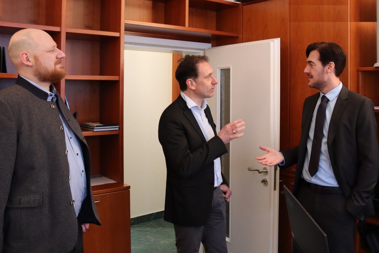 Unser Vorsitzender Jan Preuß (r.) mit AfD-Landtagsabgeordnetem Christian Loose (Bildmitte) und Gelsenkirchener AfD-Stadtverordnetem Mathias Pasdziorek (l.) heute beim Tag der offenen Tür …