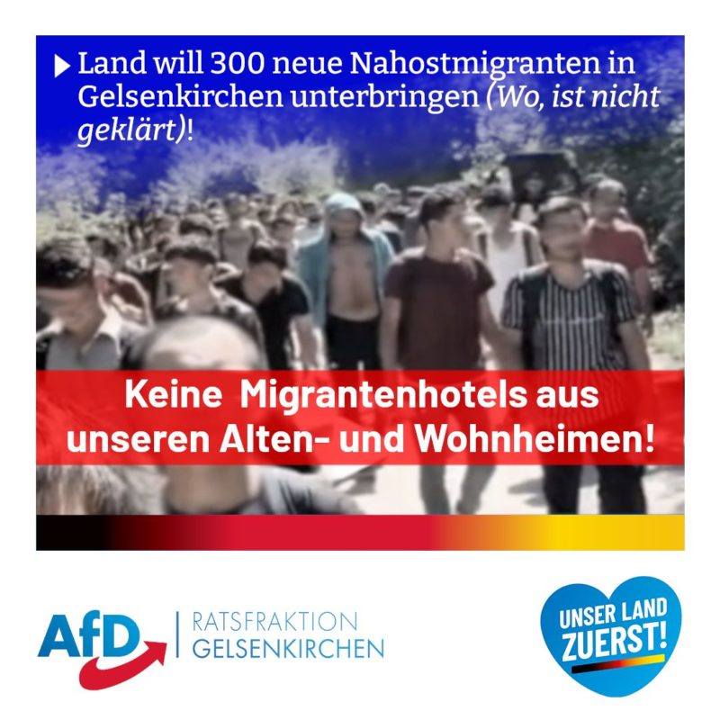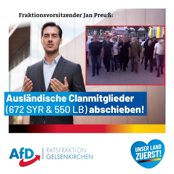 Jan Preuß, Vorsitzender AfD Stadtratsfraktion Gelsenkirchen: „Dies ist mitunter den Altparteien zu verdanken mit ihrer Politik der offenen Grenzen, so dass jeder …