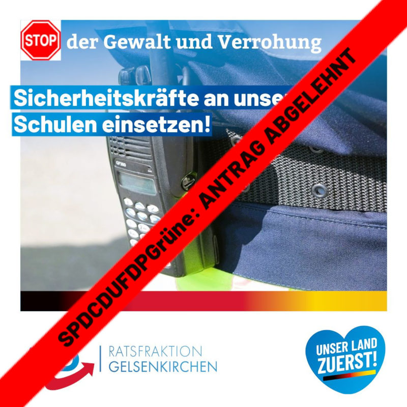 Am 09.05.2023 hat die AfD-Ratsfraktion Gelsenkirchen einen Antrag zur Einführung von Sicherheitspersonal an Gelsenkirchener Schulen gestellt. Die AfD-Ratsfraktion schlägt vor, nach dem …