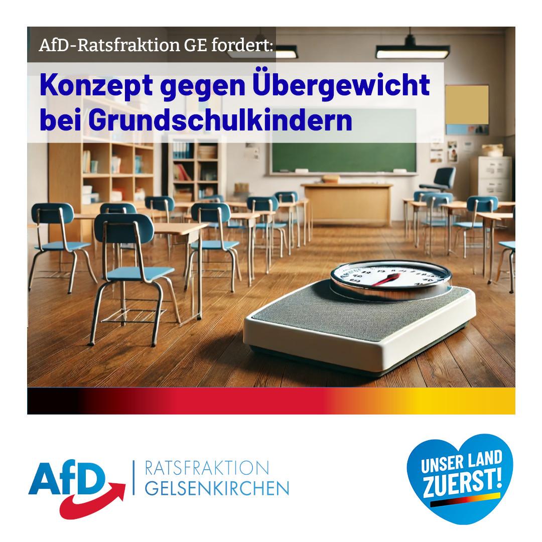 Die AfD-Fraktion Gelsenkirchen macht sich für ein Konzept zur Bekämpfung von Übergewicht bei Grundschulkindern stark. Alarmierende Daten 2018 zeigen, dass fast 20 …