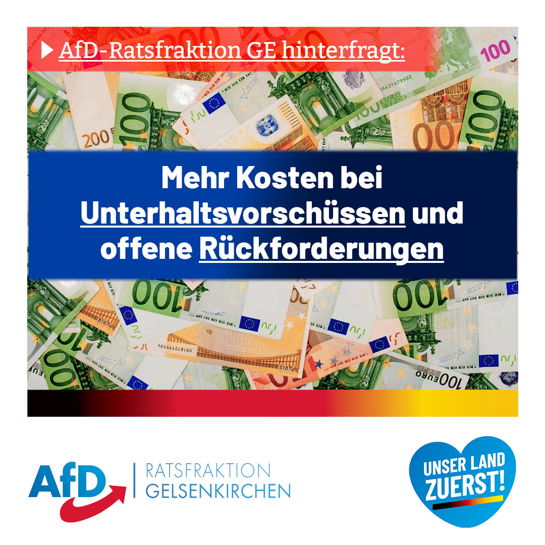 Die AfD-Fraktion Gelsenkirchen hat bei der Stadt nachgefragt, wie viel jährlich für Unterhaltsvorschüsse ausgegeben und wie viel davon zurückgefordert wird. 2020-2023 stiegen …