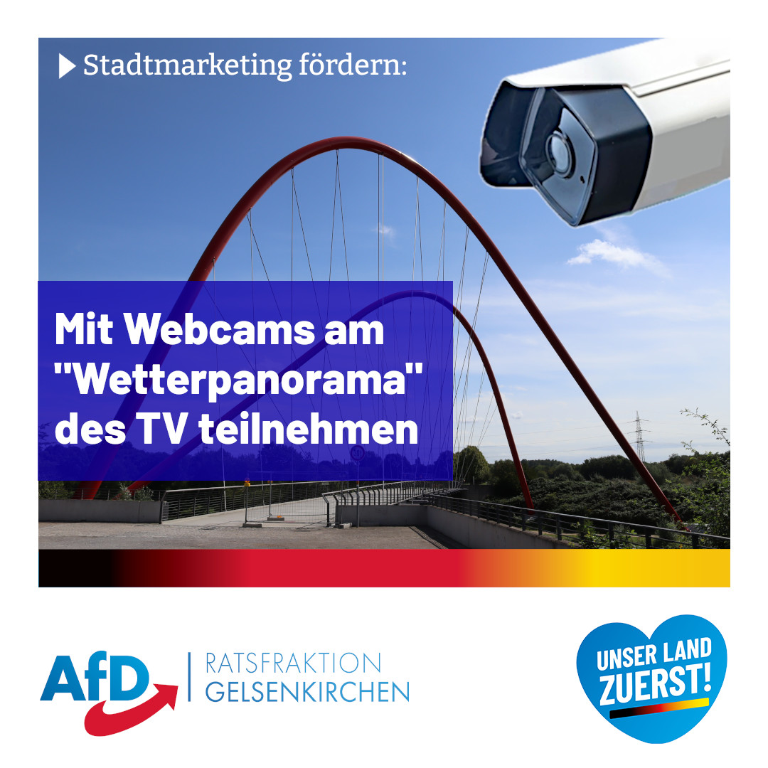 Die AfD im Stadtrat setzt sich für die Teilnahme am „Wetterpanorama“ von 3sat, BR und DF1 ein. Mit Webcams, die vorzeigbare Orte …
